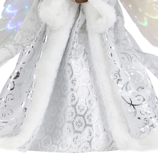 The ultimate finishing touch to your Christmas tree has been modernized with the Animated Angel Christmas Tree Topper by Mr. Christmas. This beautiful angel is dressed in a real fabric white dress with silver accents, and iridescent wings that really move. The angel’s animated wings are pre-lit with colorful fiber optic illumination, and she holds a warm white star that shines bright in her hands. This tree topper has a universal design that fits any tree and is adapter operated with a long 10 ft. cord for easy installation. For indoor use only, this beautiful Christmas Angel is ready to light up your home.