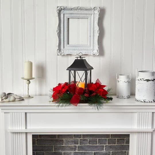 Get cozy during the most wonderful time of the year. Set the scene, smell the scents of the season with this Christmas-inspired lantern that looks straight from a holiday movie. Soft-hued evergreens are accented by Poinsettia and pinecones, inspired by nature; this piece is incredibly lifelike. Crafted from high-quality materials, this lantern will last awhile. Standing 15″, house in any space in need of holiday cheer. Perfect for an outdoor patio, dining table or kitchen nook. Your arrangement will look beautiful for years to come; simply wipe clean with a soft dry cloth when needed.