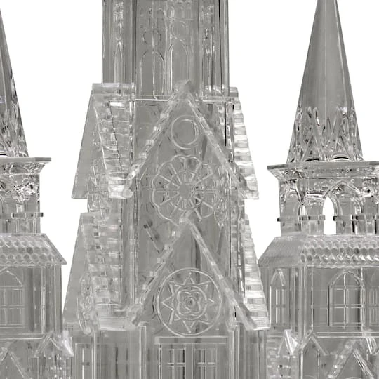 Ornate in design and majestic in stature, this three-spired cathedral will add a traditional taste to your holiday decorating. It is constructed of high-impact clear plastic and lit from inside with nine battery-operated white LED lights. Also featured is the option to play the time-honored holiday song Silent Night.