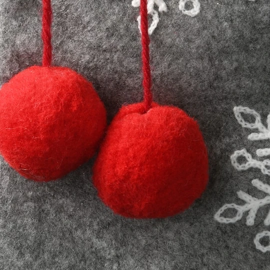 Combining fashion and function, this attractive Christmas stocking is deep and wide, allowing Santa to fill it with lots of goodies. This seasonal sock is a warm gray color with red heel and toe accents, and a motif of ornate white snowflakes. From the bright white cuff, two pom-poms on strings fall from little plaid mittens. Constructed of strong polyester materials designed for years of holiday cheer.