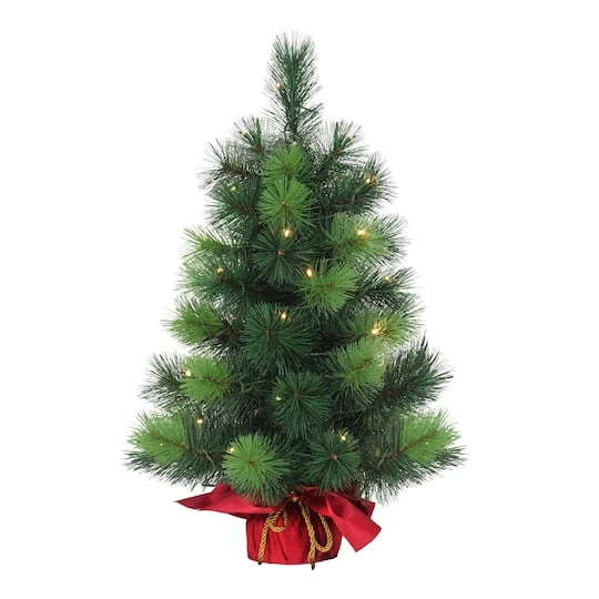 Bring the holiday spirit into your home with this 2 ft. high artificial Christmas tree. This pre-lit artificial tree features green branches and 35 warm white LED lights to brighten your home for a dazzling Christmas display. With life-like pine needles and a realistic appearance, this table top tree is sure to add warmth to any room or space for years to come.