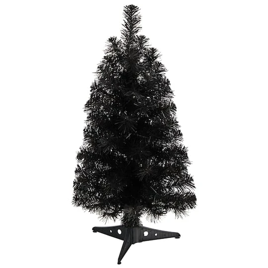 Craving a gothic Christmas or an upscale dazzling holiday season? Transform your Christmas into a unique event with this black artificial Christmas tree. Inspired by nature, PVC needles display a lush silhouette that’s perfect for housing your ornaments. Save time and money with the 35 LED lights that are more energy-efficient. Standing 2ft. you can add your favorite mini planter to customize. Why wait till Christmas? Display during Halloween, as well. Faux Christmas trees are manufactured using synthetic materials, such as polyester material or plastic, and are well designed and constructed to be life-like in appearance. This item will need to be re-shaped when removed from the secure box to allow it to reach its fullest size.