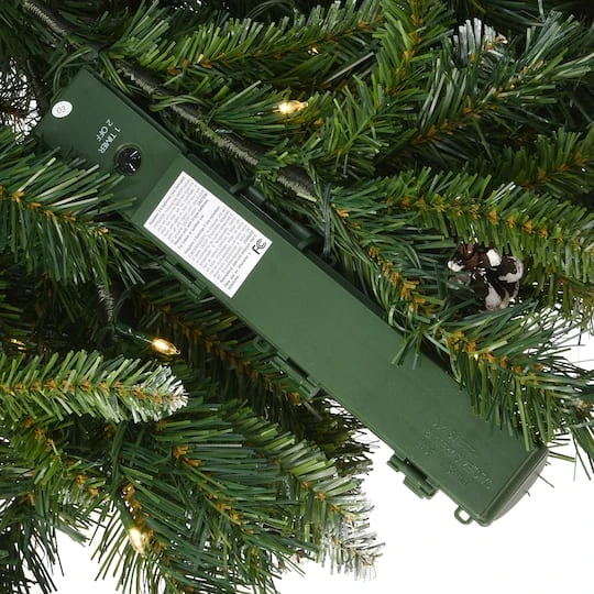 Designed for filling decorative urns and pots, this spray of evergreen branch tips is trimmed with white-tipped pine cones and red berries. It is pre-lit with battery-operated warm white LED lights that are energy-efficient and long lasting.