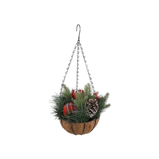 Christmas is here! Adorn your home or workspace with this adorable Christmas Arrangement in Hanging Basket. This Hanging Basket will add a bit of Holiday Cheer to your living space. Christmas arrangements are included, so you never have to worry about watering real plants!