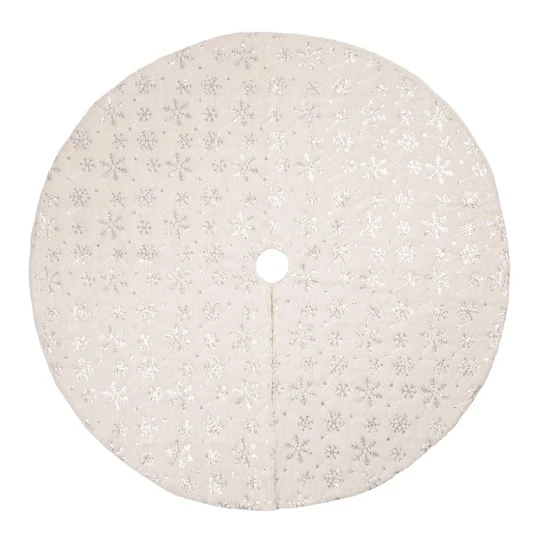 Add a bright, cozy touch to your holiday décor with this white snowflakes stocking and tree skirt group. Featuring a faux fur white trim, vivid embroidery snowflakes and with a lovely beaded design on a Ivory white plush velvet fabric. these beautiful Christmas decoration are sure to bring charm to your home.
