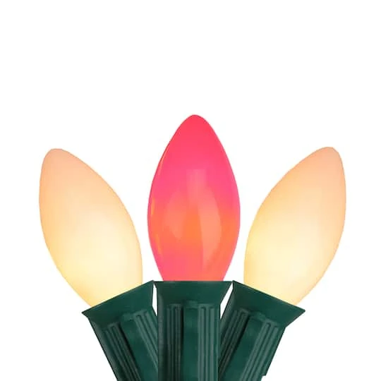 Add some light to your Christmas décor with these festive candy cane inspired red and white lights. Their easy glow is sure to bring some sparkle to your Christmas tree garland or wreath. Each light has a clip on their base so you can easily attach the lights to your tree or other desired surfaces. Fully assembled. Bulbs easily screw in and out. If one bulb burns out the rest will stay lit. The set contains end-to-end connectors, which allows you to connect multiple lighted items together (not to exceed 210 watts). These universal lights can also be used on valentine’s day mother’s day or at any special event.