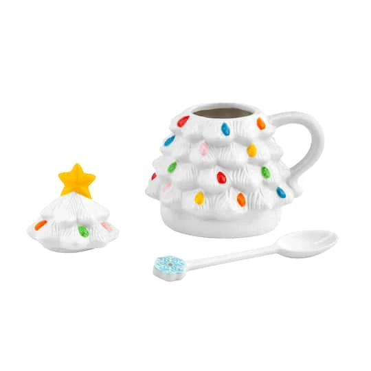 The vintage-inspired Nostalgic Tree Mug by Mr. Christmas is an instant holiday classic. With hand-painted details this 6.2″ tall pink mug is perfect for your morning coffee, or hot cocoa. This adorable ceramic mug holds 16 oz. of hot or cold liquid. Set includes the 3D Christmas tree-shaped mug, lid, and spoon. Durable ceramic construction is dishwasher and microwave safe. Use it as a mug or even as a decoration, display on your desk to keep you in the Christmas spirit. The Nostalgic Tree Mug is a great way to deck the halls at home, and it makes a charming hostess or holiday gift.